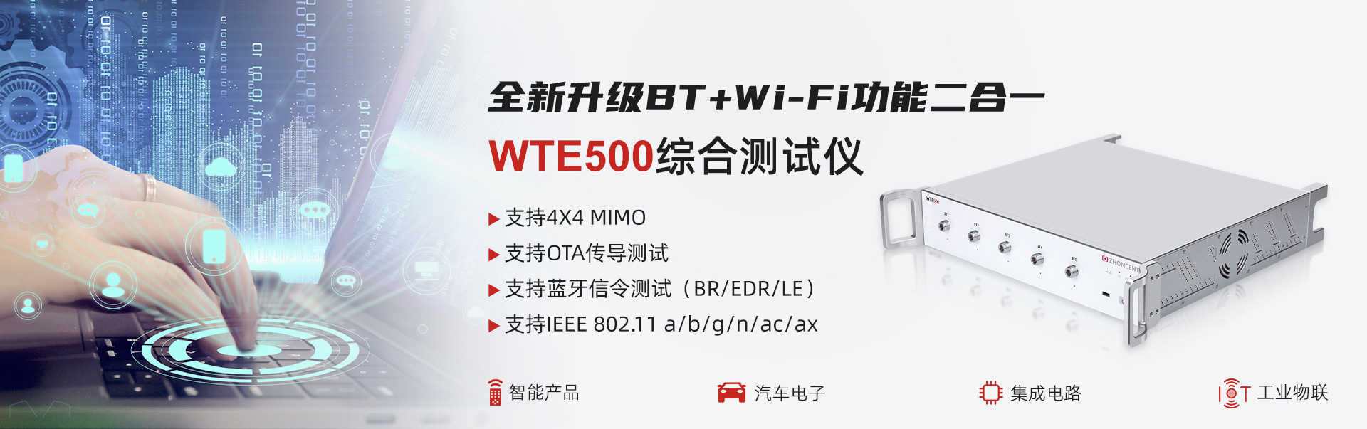 WTE800無線信令綜合測試儀(以下簡稱“WTE800”)是由深圳市中承科技有限公司自主研發(fā)和生產(chǎn),可用于Wi-Fi設備在研發(fā)、生產(chǎn)、認證等環(huán)節(jié)測試的多功能綜合測試儀,通過配置客戶端或AP端參數(shù),真實建立Wi-Fi網(wǎng)絡呼叫連接,自動實現(xiàn)被測件的各項射頻與協(xié)議性能指標精準測試。